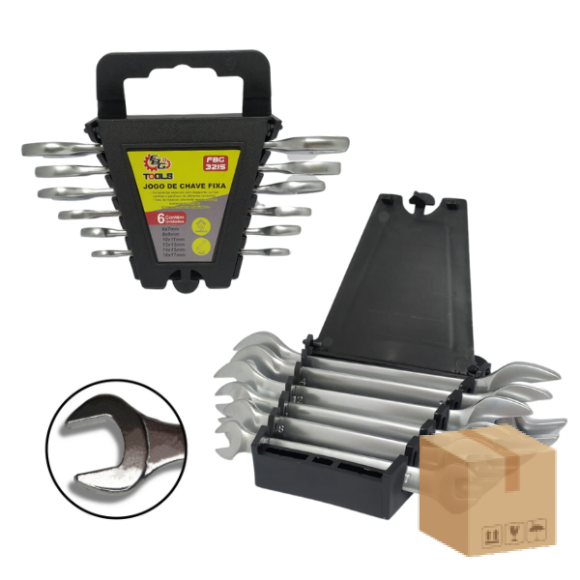 Descrição: Jogo de chave fixa com 6 peças ideal para desapertar ou fixar cavilhas e parafusos de diferentes tamanhos.